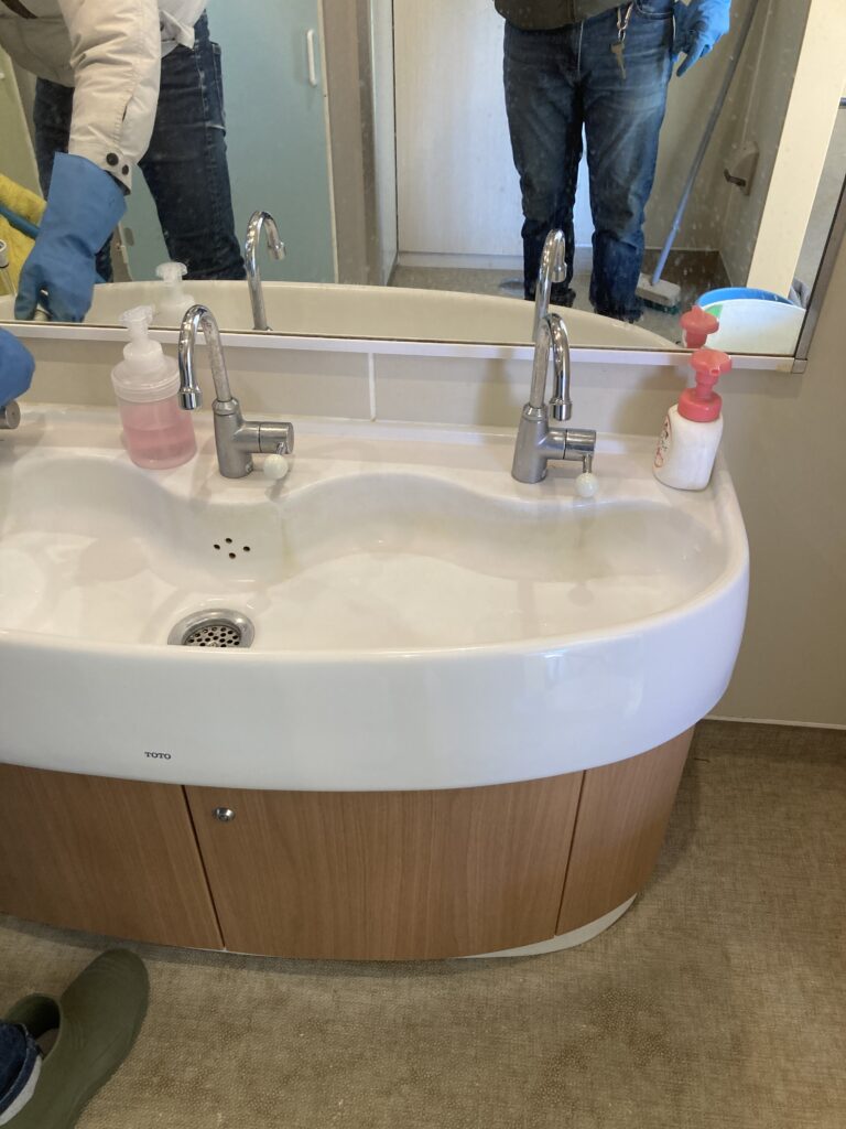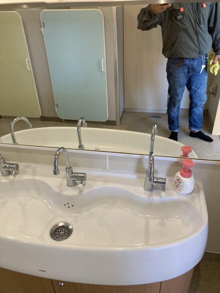 さてさて、今回は交野市にある幼稚園の子供用・大人用トイレ(大・小便器)・洗面所・SK=スロップシンク(モップなど掃除用具を洗うための流し台)と床の清掃を行いました。