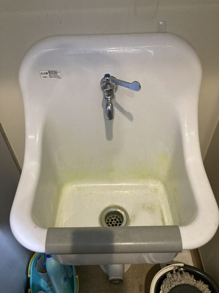洗面所・SK=スロップシンクも同様に水垢・石鹸カス・カビなどに適した薬剤を塗りしばらくおいておき擦り洗いをしてしっかり水で流します。