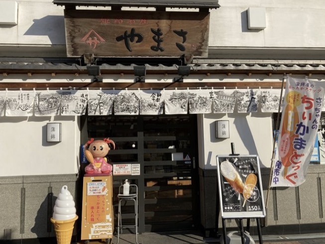 さすがにお腹がすいたので、出店がいっぱいあったので、子供らはめちゃくちゃながいフライドポテトや肉巻きフランクフルトなど食べ、大人はヤマサ蒲鉾のさまざまな練り物を購入して帰りの道中に食べました。
