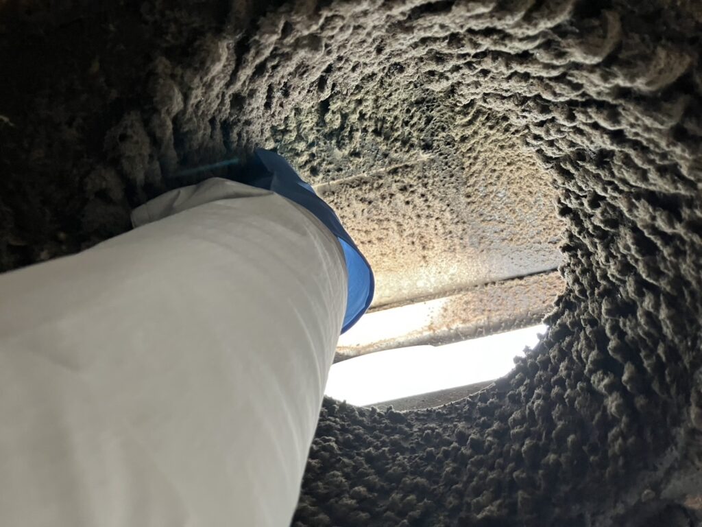 その後スコッチ(たわし)に先程作った薬剤を含ませ擦り洗いを行っていきます。